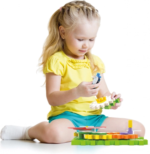 Zestaw konstrukcyjny Quercetti ogród w ruchu oferuje naukę poprzez zabawę. Dzieci łączą koła zębate, tworzą własne mechanizmy i odkrywają zasady przenoszenia ruchu. Po obróceniu korbką cały kolorowy świat zaczyna się kręcić – kwiaty się rozchylają, motyle machają, a robaczki ruszają w drogę.