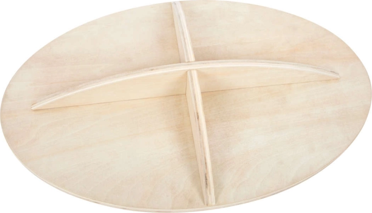 Solidna drewniana konstrukcja o gładkiej powierzchni jest przyjemna w dotyku i odporna na codzienne użytkowanie. Półkulista/zaokrąglona podstawa zapewnia delikatny ruch kołyszący, który aktywuje głęboki układ stabilizacyjny i wspiera prawidłową postawę ciała. Idealna dla dzieci od 5 lat oraz do lekkiego treningu w domu lub w przedszkolu.