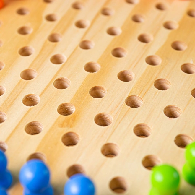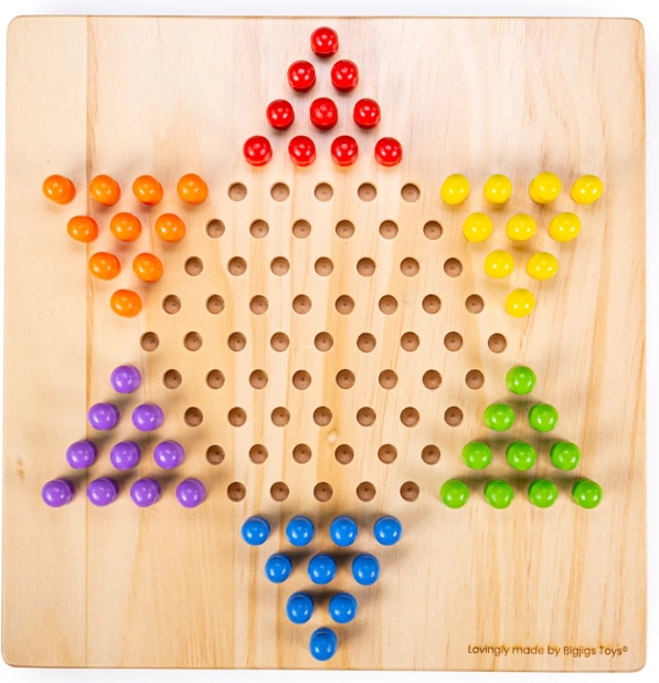 Klasyczna gra planszowa dla całej rodziny w wysokiej jakości, drewnianym wykonaniu. Rozwija logikę, koncentrację i motorykę małą, zachwyca żywymi kolorami i przyjemnym naturalnym materiałem. Zawiera planszę i 60 pionków dla 2–6 graczy.