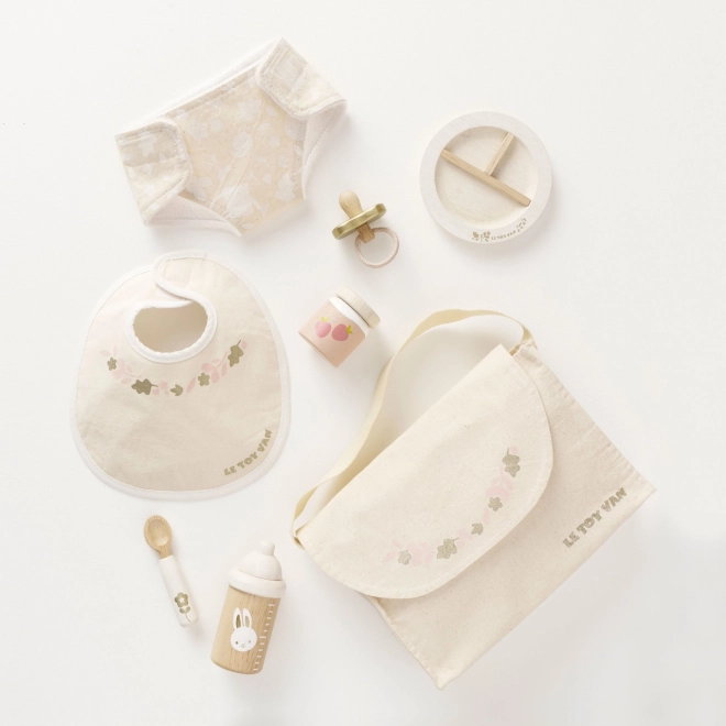Opieka nad lalkami i pluszakami nigdy nie była tak zabawna i inspirująca. Le Toy Van zestaw opieki oferuje kompletny zestaw dla małych opiekunów. Zawiera tekstylną torbę na pieluchy z dekoracyjnym wzorem, smoczek, śliniaczek, pieluchę, talerz, łyżkę, przekąski i butelkę. Każdy element jest wykonany z myślą o zrównoważonym rozwoju i jakości, aby wytrzymał wiele godzin zabawy.