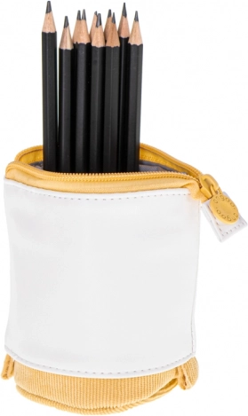 Górna część z ekoskóry i dolna ze sztruksu zapewniają długą żywotność, przyjemny dotyk i atrakcyjny wygląd. Precyzyjne szwy i solidny zamek chronią zawartość piórnika.