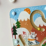 Magnetyczny labirynt od Vilac przenosi dzieci do świata subtelnych ilustracji Michelle Carlslund. Za pomocą magnetycznego rysika dzieci mogą pomagać zwierzątkom doprowadzić ich kuleczki na miejsce. Ta zabawka jest zabawna i bezpieczna dzięki magnetycznemu mechanizmowi.