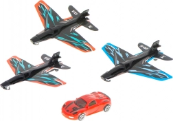 Zestaw zawiera 3 samoloty do zabaw zespołowych oraz 1 autko do wyścigów naziemnych. Wspiera małą i dużą motorykę, koordynację oko–ręka oraz kreatywną zabawę, która skutecznie odciąga dzieci od ekranów. Wyraziste kolory i atrakcyjny design przyciągają wzrok – idealny pomysł na prezent dla małych miłośników latania i szybkiej jazdy.