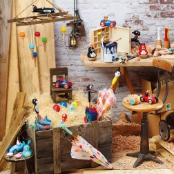 Rączki z litego drewna są lakierowane tradycyjną metodą, co zapewnia gładki chwyt i długą trwałość. Figlarny wygląd motywuje dzieci do ruchu.