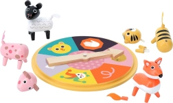 Vilac duża loteria ze zwierzętami to wspaniała interaktywna gra, która pozwala dzieciom i dorosłym zanurzyć się w świecie kolorowych zwierzątek. Dzieci wybierają zwierzęta i starają się z nich złożyć kilka części, jednak przypadek odgrywa swoją rolę! Gra oferuje niesamowite doświadczenie, podczas którego gracze na zmianę kręcą kołem szczęścia i zbierają poszczególne części swoich zwierząt.