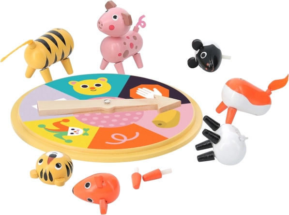 Koło szczęścia wprowadza do gry element losowości i napięcia, gdzie każdy gracz kolejno buduje swoje zwierzę według tego, co wypadnie. Świetna dynamika dla dzieci!