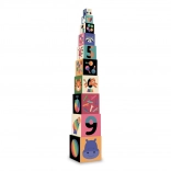 Unikatowa wieża do układania, która rośnie do 87 cm wysokości, jest pełna kolorowych ilustracji cyrkowych zwierząt i liczb. Dzieci poprzez zabawę uczą się rozpoznawać liczby oraz rozwijają małą motorykę i koordynację. Dzięki takiemu wykonaniu zabawka jest łatwa do przechowywania i zapewnia stymulację wzrokową oraz kreatywną zabawę.