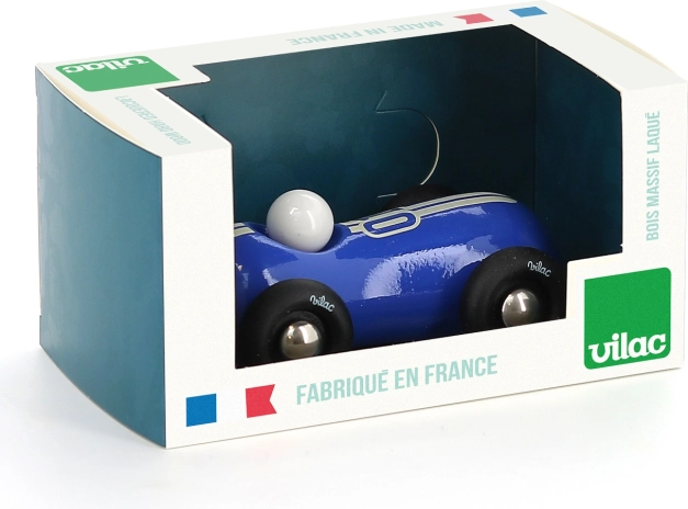 Niebieska wyścigówka Vilac Streamline PM zachwyca ponadczasowym, przyjemnie zaokrąglonym wzornictwem i precyzyjnym wykonaniem. Drewniany korpus jest lakierowany tradycyjną metodą zanurzeniową, co zapewnia odporną i równomierną powierzchnię. Plastikowe koła o płynnej pracy sprawiają, że jazda to czysta radość – zarówno na podłodze w domu, jak i na półce jako stylowa dekoracja.