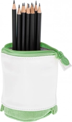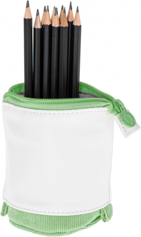 Wytrzymały materiał tekstylny gwarantuje długą żywotność, a zamek chroni zawartość przed wypadnięciem. Minimalistyczny zielono-biały design spodoba się dzieciom i dorosłym, świetnie uzupełniając nowoczesne wyposażenie szkolne i biurowe.