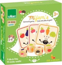 Zabawna rodzinna gra kościana Vilac – Dzień zbiorów zaprasza dzieci od 3 lat do szybkiego rzucania i zbierania przepisów. Zestaw zawiera 55 kart i 4 kości, gra przeznaczona dla 2–6 graczy. Proste zasady, piękne wykonanie i ilustracje warzyw wspierają liczenie, koncentrację i spostrzegawczość.