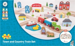 Ta kolejka „miasto i wieś” przynosi dzieciom bogaty świat zabawy – przejedź przez tętniące życiem miasto, pokonaj czerwony most, wyrusz do natury wśród drzew i domków i zatrzymaj się przy kościele lub na dworcu. Samochody cierpliwie czekają na przejazdzie, a pociąg przybywa na czas – idealne do tworzenia własnych historii.