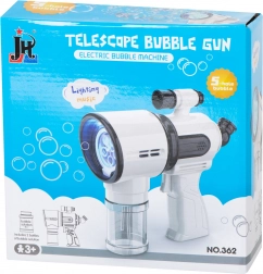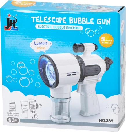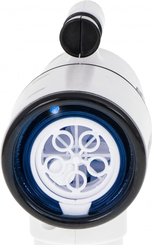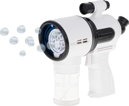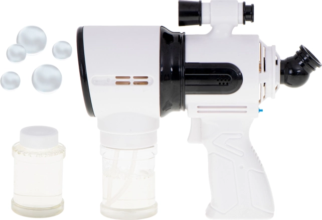 Ten biały pistolet do baniek jest idealny dla dzieci od 3 lat oraz na rodzinne zabawy na świeżym powietrzu. Zintegrowany wentylatorek i system z 5 pierścieniami zapewniają płynne dmuchanie i strumień dziesiątek aż po setki baniek po jednym naciśnięciu spustu. Dla większej zabawy nie brakuje podświetlenia LED i dźwięków, które można włączyć lub wyłączyć jednym przyciskiem.