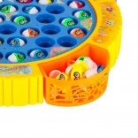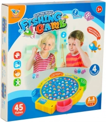 Zabawna rodzinna gra w łowienie rybek z obrotową platformą i muzyką, zawiera 45 rybek i 4 wędki dla 1–4 graczy. Wspiera refleks, koncentrację i zręczność, ma kolorowe wyjmowane kubeczki na zdobycze oraz efekty dźwiękowe. Zasilanie na 3× AA baterie.