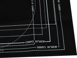 Białe oznaczenia na macie dokładnie pokazują wymiary dla 500–2000 elementów, dzięki czemu łatwo zaplanujesz kompozycję.