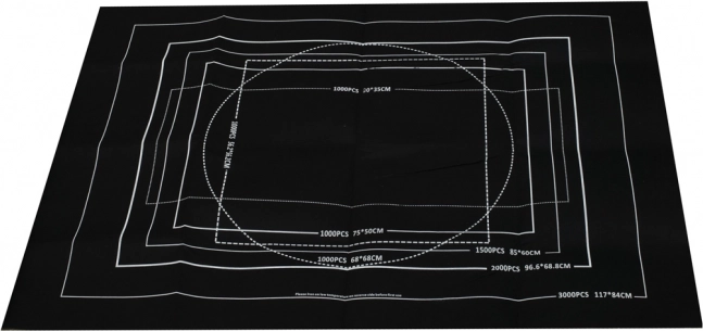Białe obrysowe ramki na macie pokazują zalecaną powierzchnię dla 500 aż do 3000 elementów, więc zawsze wiesz, ile miejsca potrzebujesz.