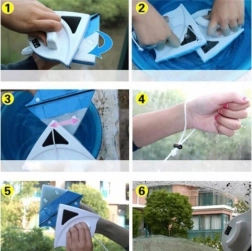 W zestawie znajduje się linka zabezpieczająca do przymocowania do nadgarstka, która zapobiega utracie zewnętrznej części w razie przypadkowego rozłączenia. Dzięki silnym magnesom obie części stabilnie trzymają się szyby i ułatwiają płynny ruch podczas czyszczenia.