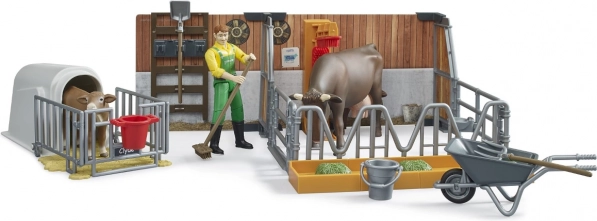 Pozwól dzieciom stać się małymi rolnikami z tym szczegółowym zestawem rolniczym. Zestaw zawiera dwa boksy: jeden dla cielęcia i większy dla krowy, oba wyposażone w poidła i karmniki. Dzieci będą mogły bawić się z ruchomą figurką rolnika i realistycznymi narzędziami, co przybliży im codzienne życie na farmie.