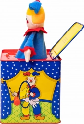 Obróć korbkę i zobacz, jak klaun wyskakuje. Ta zabawka jest idealna do rozwijania drobnych umiejętności motorycznych.