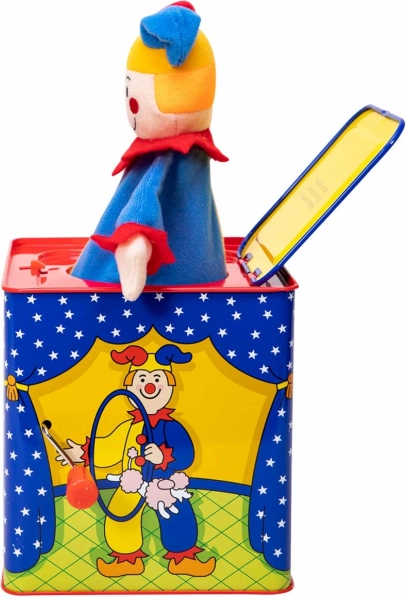 Pudełko muzyczne klaun to ponadczasowa zabawka wykonana z cyny z pięknym wzorem, która zapewnia godziny zabawy. Wystarczy obrócić korbkę i słuchać melodii znanej piosenki „Pop Goes The Weasel”, aż pojawi się kolorowy klaun.