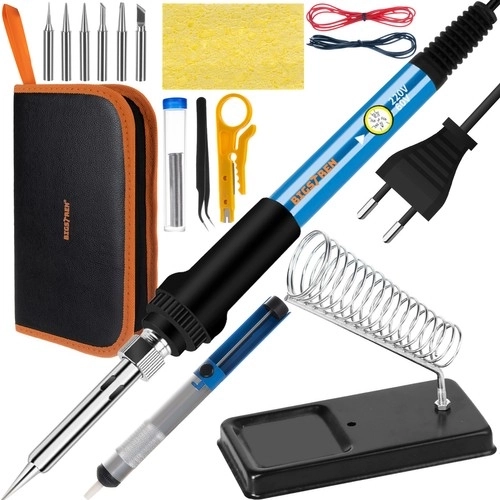 Ten kompletny zestaw 15 elementów zawiera wszystko, czego potrzebujesz do efektywnego lutowania. Szybkie nagrzewanie w ciągu 20 sekund zapewnia, że możesz rozpocząć pracę niemal natychmiast. Ergonomiczny design lutownicy zapewnia wygodne trzymanie oraz precyzyjne sterowanie. Zestaw zawiera różne komponenty, które można łatwo przenosić w praktycznym etui.