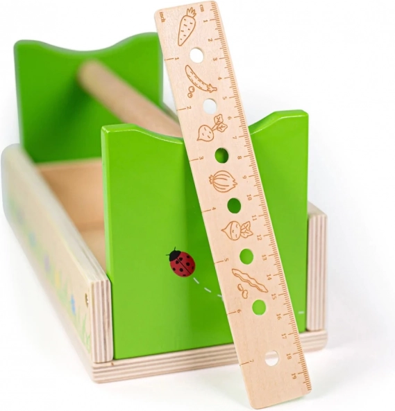 Ten kolorowy zestaw ogrodniczy rozwija zręczność, cierpliwość i więź z naturą. Wszystko jest umieszczone w solidnej drewnianej skrzynce w świeżym zielonym designie z biedronkami i kwiatami. Dzieci mogą bezpiecznie próbować sadzić, spulchniać czy mierzyć, naśladując dorosłych.