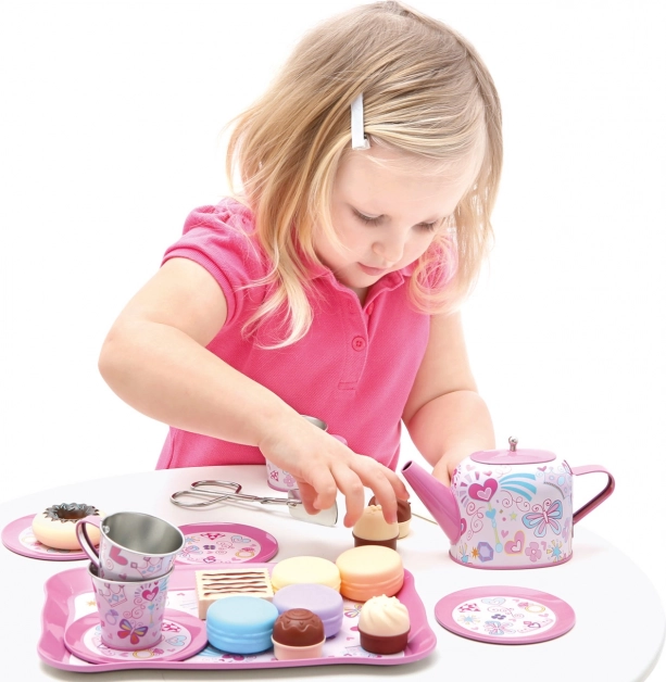 Zabawa w gospodarza rozwija umiejętności społeczne i komunikacyjne, uczy dzieci dzielenia się i planowania. Pogodne kolory oraz subtelne wzory serduszek i kwiatów sprawią, że zestaw pokochają zarówno dziewczynki, jak i chłopcy. Idealny do domowej bawialni i na dziecięce przyjęcia.