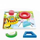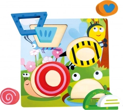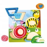 Drewniana, przestrzenna układanka z wesołymi, kolorowymi motywami stawiku jest idealną pomocą dla dzieci od 3 lat. Elementy wkłada się do solidnej podstawy we właściwej kolejności, co wspiera rozumienie sekwencji oraz rozwój zdolności koordynacyjnych. Wysoka jakość wykonania z litego drewna i grubej sklejki czyni tę zabawkę wytrzymałym towarzyszem codziennej zabawy.