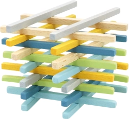 Zestaw 36 gładkich patyczków w atrakcyjnych kolorach zachęca do eksperymentowania z konstrukcją i strategią.