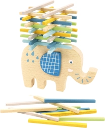 Bino gra balansowa Słoń zapewnia emocjonującą rozrywkę dla całej rodziny. Zadaniem graczy jest stopniowe układanie różnokolorowych patyczków na grzbiecie słonia tak, aby utrzymać równowagę i jak najbardziej utrudnić kolejny ruch przeciwnikom. Dzieci przy tym w naturalny sposób rozwijają umiejętności koordynacyjne, cierpliwość i logiczne myślenie.