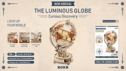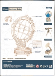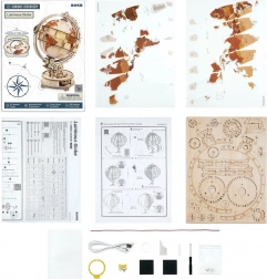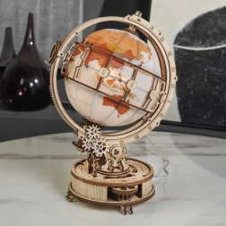 Odkryj urok świata z dekoracyjnym i funkcjonalnym modelem – drewnianym globusem z podświetleniem LED, który złożysz samodzielnie. Dzięki układowi przekładni globus obraca się płynnie, znajdziesz tu także mechaniczną lupę do czytania detali oraz energooszczędne oświetlenie LED zasilane przez microUSB/USB-A. Zestaw z wysokiej jakości sklejki oferuje wysoki poziom trudności, doskonale sprawdza cierpliwość i koncentrację, a po złożeniu zamienia się w stylową lampkę nocną w retro designie.