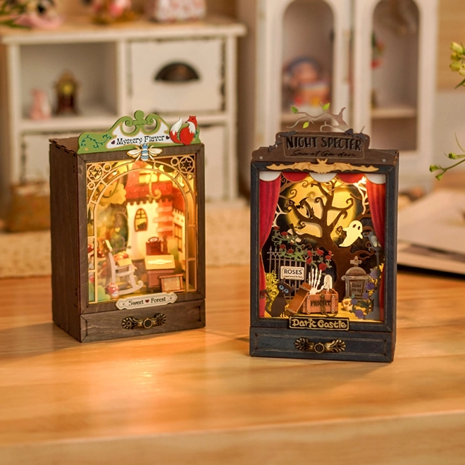 Przygotuj swoją scenę i odgrywaj magiczne przedstawienia w miniaturowych dioramach. To miniaturowe teatrzyko jest wyposażone w ciepłe oświetlenie LED, które wydobędzie głębię i atmosferę twojej scenki. Ukryte przesuwne panele z przezroczystego plastiku chronią twoją dekorację przed kurzem.