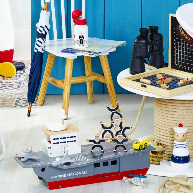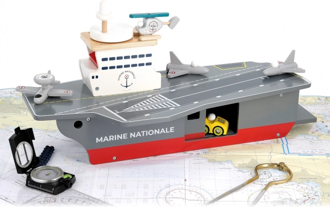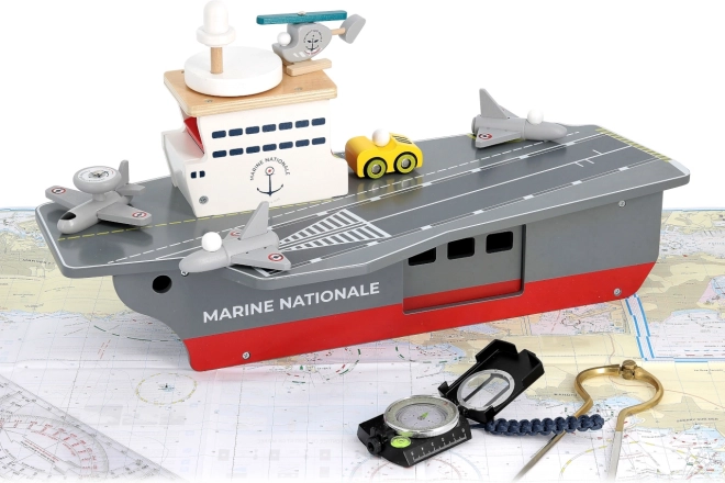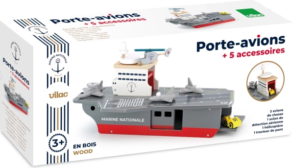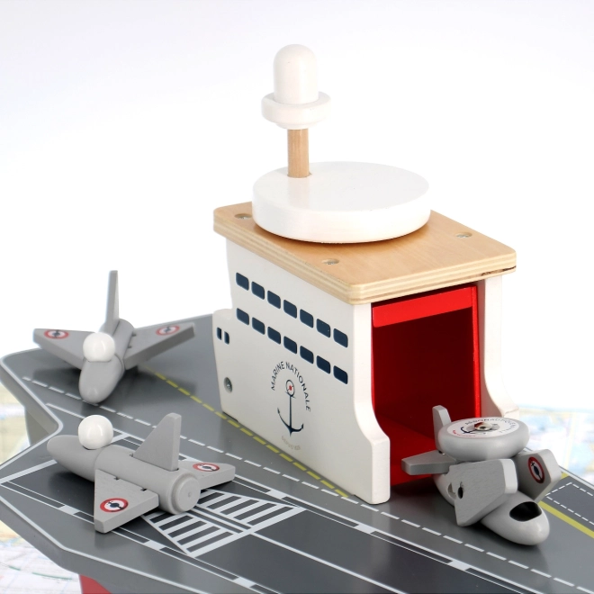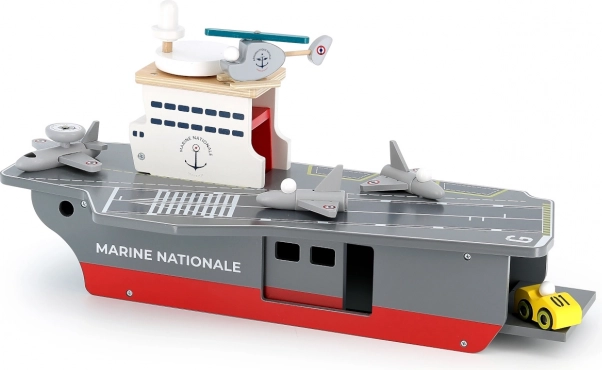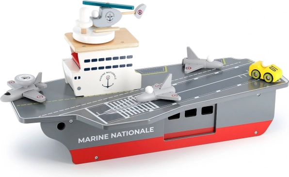 Ten precyzyjnie wykonany drewniany lotniskowiec wiernie odwzorowuje prawdziwe okręty lotnicze, włącznie z oznaczeniami Marine Nationale. Został wykonany z wytrzymałej, a jednocześnie lekkiej sklejki, dzięki czemu jest stabilny i wygodny w obsłudze nawet dla młodszych dzieci. Realistyczne, malowane detale i przemyślane funkcje pobudzają wyobraźnię i zapewniają autentyczne morskie doświadczenia.