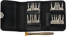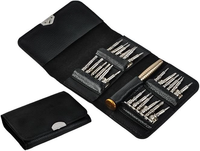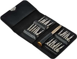 Zestaw precyzyjnych śrubokrętów 25w1 zawiera łącznie 24 wymienne groty oraz podstawowy uchwyt. Jest idealny do serwisowania i napraw większości dostępnych na rynku urządzeń elektronicznych.