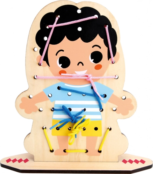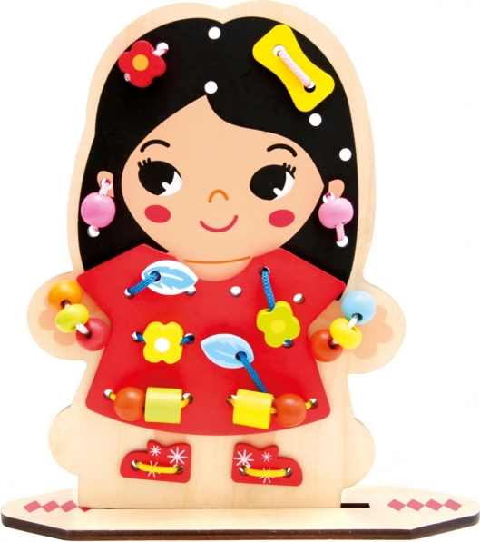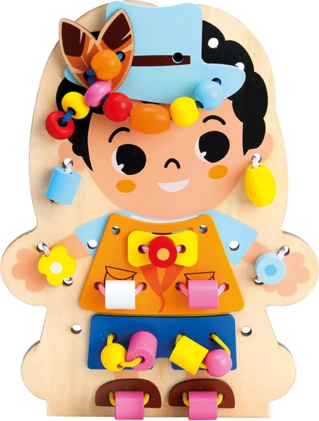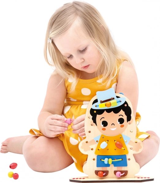 Odkryj kreatywną drewnianą grę do nawlekania, która zajmie dzieci na długie godziny, a jednocześnie rozwija ich umiejętności. Dwustronnie zadrukowana plansza z postacią i bogaty zestaw akcesoriów wspierają małą motorykę, koordynację ręka–oko oraz kreatywność. Dzięki 60 elementom dzieci ćwiczą cierpliwość, logiczne myślenie i uczą się rozwiązywania problemów poprzez zabawę.