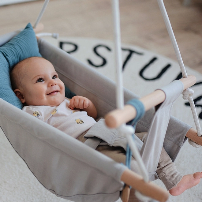 • Wygodna dziecięca huśtawka z tkaniną, która dopasowuje się do ciała dziecka.