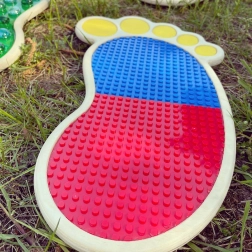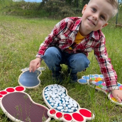 Ten zestaw ścieżek sensorycznych i kręgów oferuje szerokie możliwości zastosowania, zwłaszcza dla dzieci w wieku przedszkolnym, dzieci z wadami wzroku lub podczas terapii. Każda ścieżka z odpowiadającym jej kręgiem ma różną fakturę powierzchni, co wspiera rozwój dotyku.