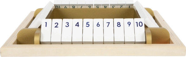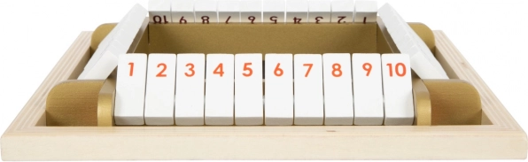 Ta nowoczesna wersja klasyki SHUT THE BOX z eleganckimi złotymi detalami wspiera dzieci w rozwoju wczesnej matematyki, logiki i koncentracji. Odchylane klapki z liczbami 1–10 zachęcają do ćwiczenia sum z rzutów kostkami i do szybkiego podejmowania decyzji – a wszystko to w formie zabawy.