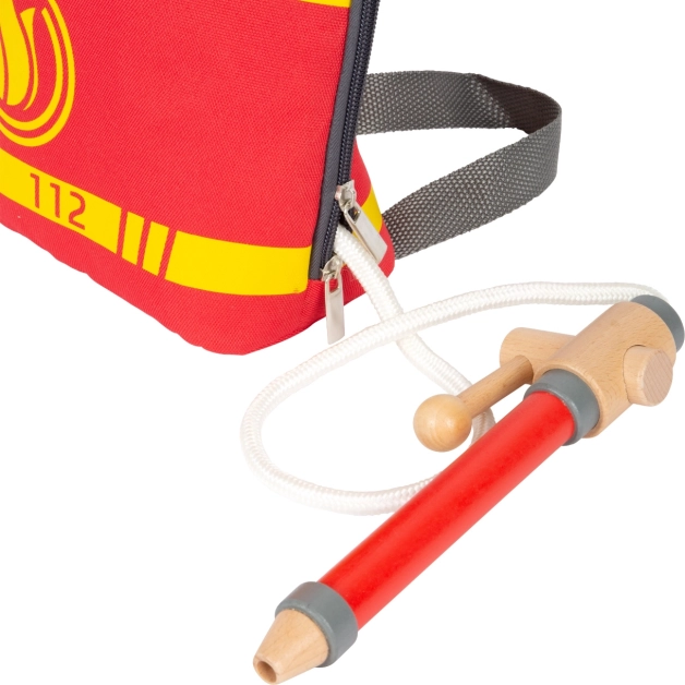 Ruszaj do akcji z pełnym wyposażeniem! Ten dziecięcy strażacki plecak small foot w barwach ratunkowych oferuje regulowane szelki, szerokie otwarcie na podwójny zamek oraz mnóstwo miejsca do przechowywania na drewniane i plastikowe akcesoria. Dzięki klamrom zatrzaskowym łatwo przymocujesz dodatkowe wyposażenie, a najlepszym gadżetem jest zabawkowa sikawka strażacka do realistycznej zabawy w strażaków.