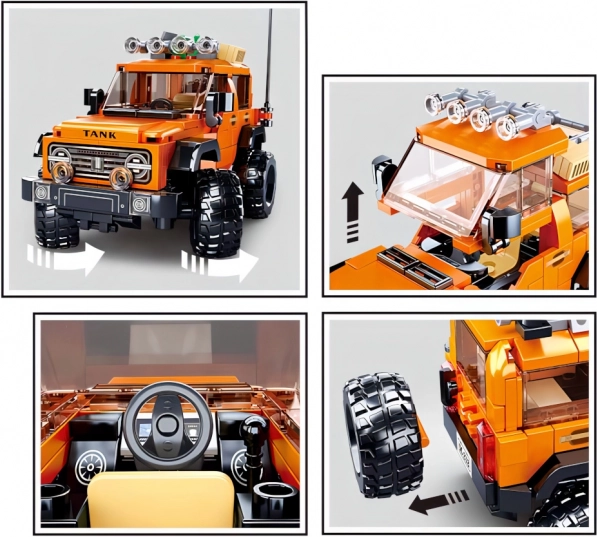 Odkryj frajdę z konstruowania terenowego auta inspirowanego amerykańskimi SUV-ami. Model w pomarańczowo-czarnym wydaniu z masywnymi kołami, bagażnikiem dachowym i szczegółową atrapą chłodnicy jest idealny do dynamicznych scenariuszy oraz jako ozdoba półki. Dzięki wytrzymałemu tworzywu ABS zestaw jest solidny i bezpieczny.