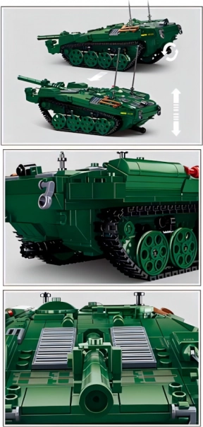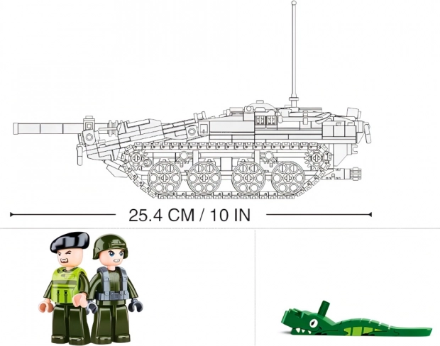 Po złożeniu czołg ma długość 25,4 cm i świetnie prezentuje się zarówno na półce, jak i w dynamicznej zabawie. Figurki mają obrotowe i odchylane części, co rozwija wyobraźnię i wspiera ruchową zabawę. Zestaw jest w pełni kompatybilny z klockami innych marek, więc łatwo rozszerzysz go o własne konstrukcje.