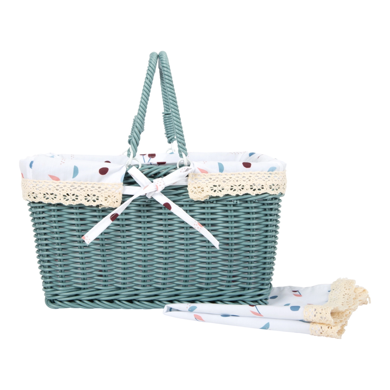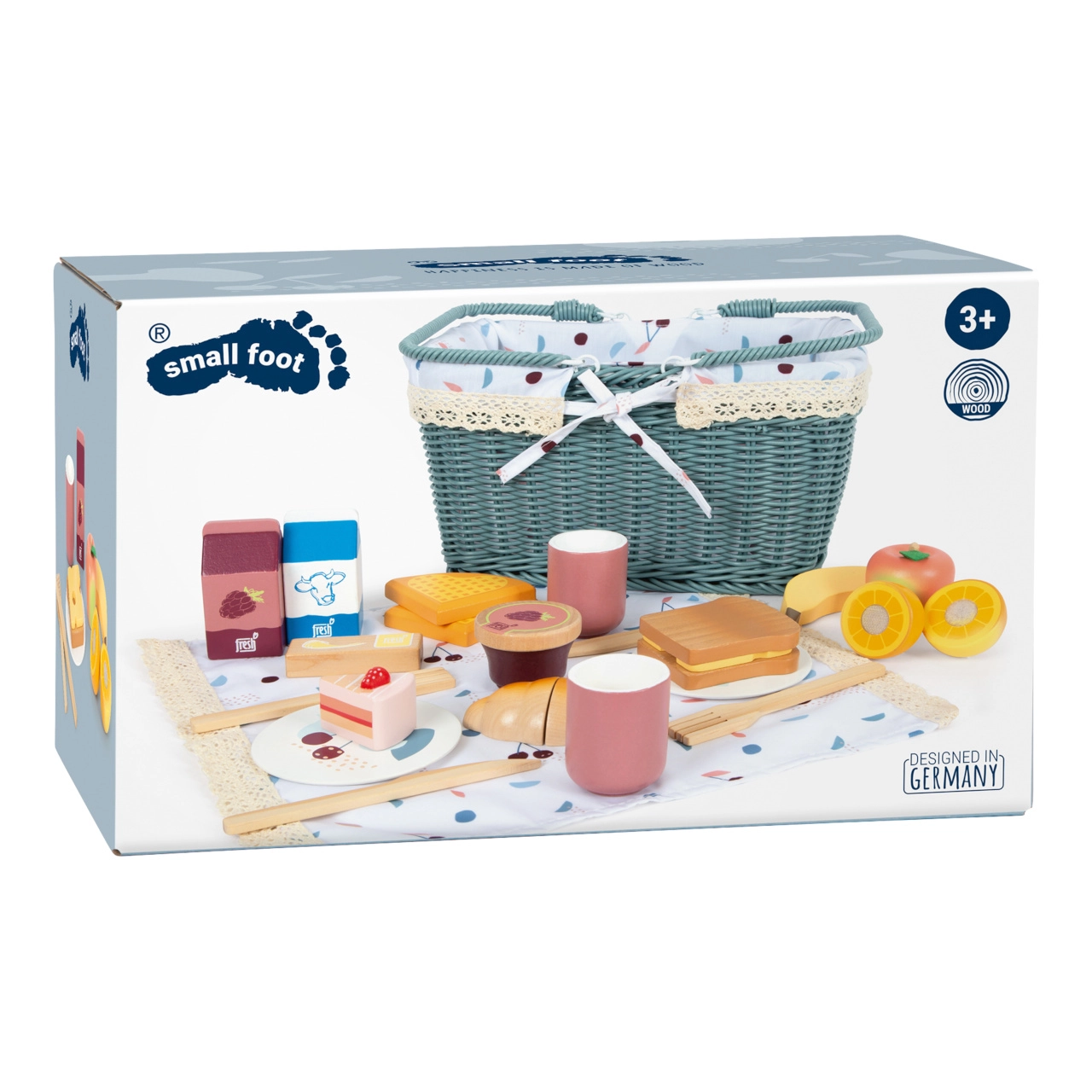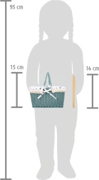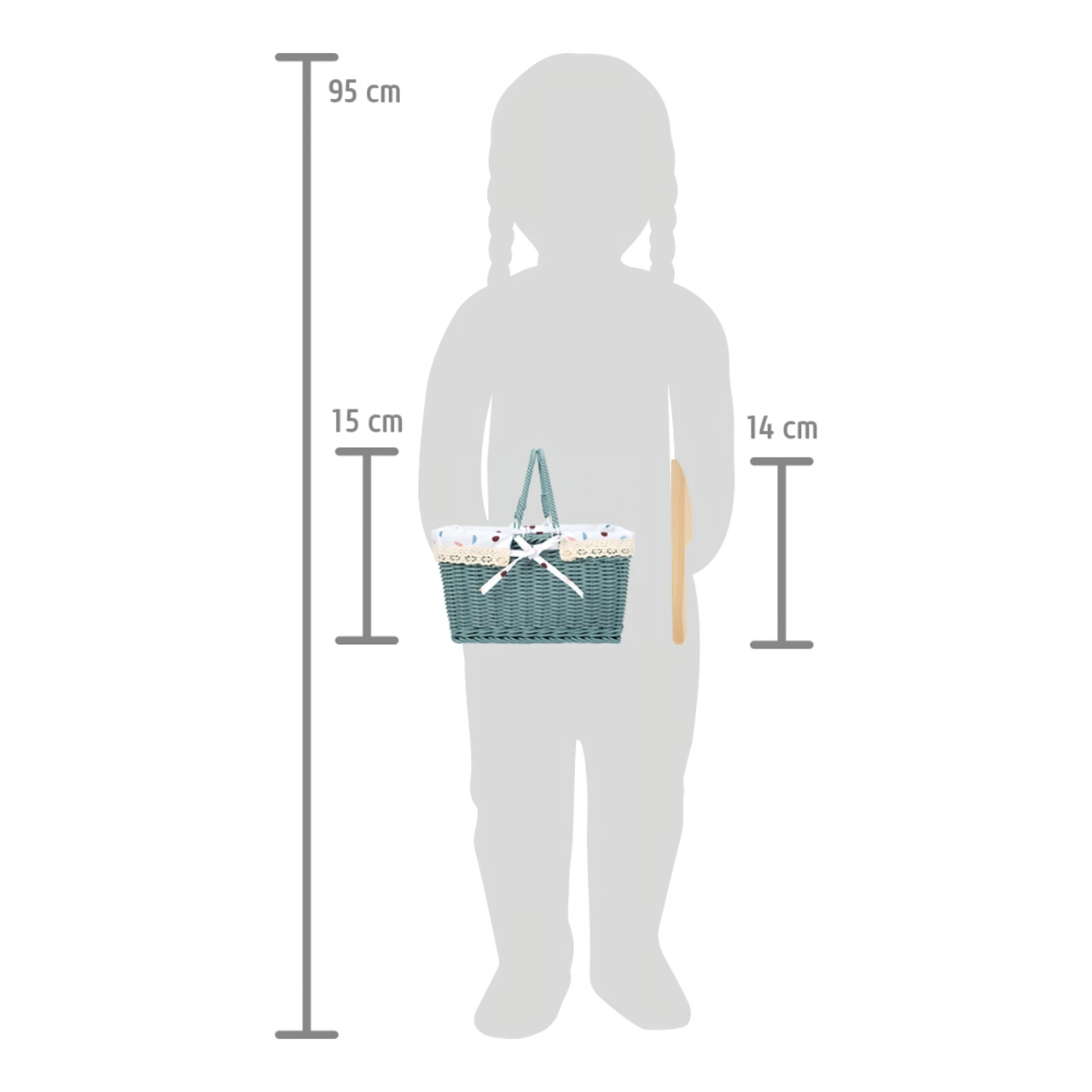 Wybierz się na rodzinny piknik! Z tym koszykiem piknikowym, który zawiera wszystko, co potrzebne dla dwóch osób, każda wyprawa do ogrodu lub na łono natury będzie wyjątkowym przeżyciem. Koszyk to świetny dodatek dla dzieci, ponieważ wspiera wyobraźnię i kreatywność podczas zabawy w odgrywanie ról. Znajdziesz w nim drewniane talerze, noże i jedzenie, które dzięki rzepom pozostaje razem. Wewnętrzna wyściółka jest łatwa w czyszczeniu, co zwiększa praktyczność.
