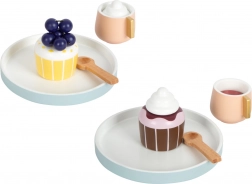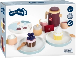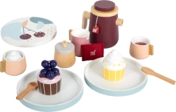 Ten zestaw herbaty i kawy to idealny dodatek do dziecięcej kuchni, wzbogacający zabawę o nowe wymiary. Zawiera filiżanki, talerzyki, łyżeczki, cukierniczkę, dzbanek na mleko, imbryk i wiele innych, w tym dekoracyjne muffiny i bita śmietana. Właściwości produktu: