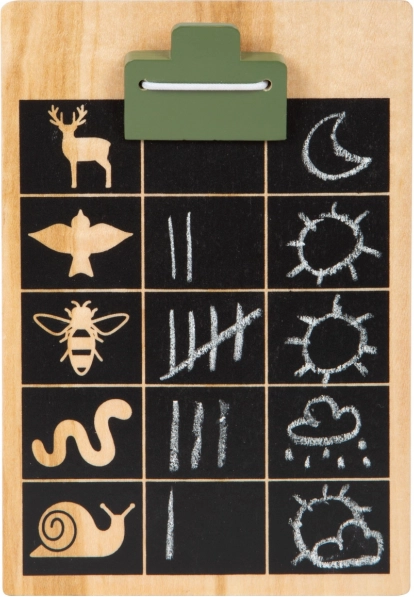 - Tablicę z klipsem do zapisywania i dokumentowania nowych odkryć.