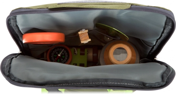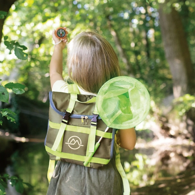 W zestawie znajduje się komplet narzędzi dla młodych odkrywców. Od lupy po kompas, wszystko, co potrzebne jest częścią plecaka.