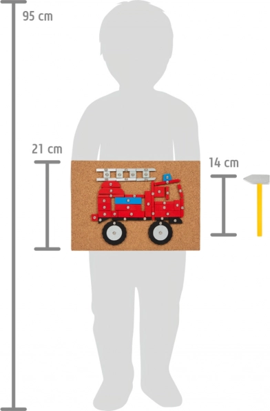 Z tą klasyczną grą do wbijania w nowoczesnych kolorach dzieci mogą tworzyć obrazki środków transportu i maszyn budowlanych według sześciu obrazkowych szablonów lub zgodnie z własną wyobraźnią. Główne cechy: