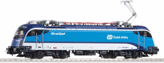 Model nowoczesnej czteroosiowej elektrycznej lokomotywy Rh 1216 TAURUS w barwach Railjet Kolei Czeskich zachwyca realistycznym wykonaniem, płynną jazdą i detalicznym nadrukiem. Oferuje sterowanie analogowe, zasilanie DC, oświetlenie zmieniane zgodnie z kierunkiem jazdy, cztery pantografy oraz możliwość rozbudowy o cyfrowy dekoder dźwięku przez interfejs NEM 652.