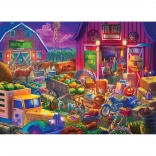 Puzzle Brain Tree zmierzch na podwórku przeniosą Cię na malowniczą farmę pełną życia i kolorów. Bogata scena ze stodołą, zwierzętami, starym ciężarówką i sezonowymi plonami zachwyci wszystkich miłośników szczegółowych ilustracji. Dzięki najwyższej jakości nadrukowi i matowej powierzchni każdy motyw świetnie wygląda nawet przy zmiennym oświetleniu.