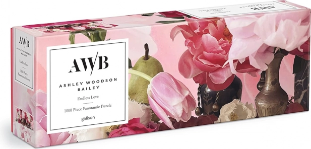 Panoramiczne puzzle Endless Love prezentują elegancką kwiatową martwą naturę pełną tulipanów i piwonii w delikatnych odcieniach różu i zieleni. Dzięki pierwszorzędnemu drukowi i matowej powierzchni detale oraz nasycenie barw są znakomicie oddane, dzięki czemu układanie jest równie piękne jak gotowy obraz. Autorką jest amerykańska artystka i fotografka Ashley Woodson Bailey, znana ze swoich wyrafinowanych botanicznych kompozycji.