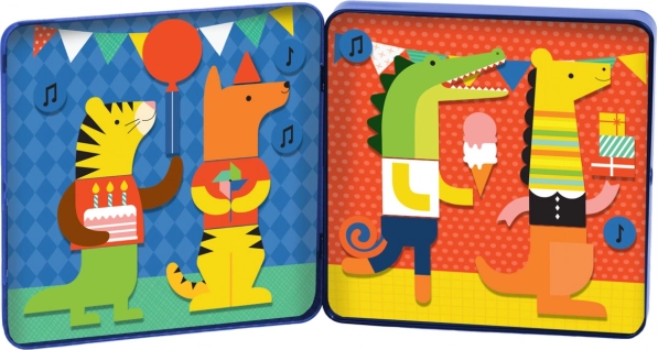 Magnetyczna książeczka Zwierzęca impreza PETIT COLLAGE zapewnia godziny kreatywnej zabawy. W kompaktowym metalowym etui dzieci mogą łączyć zwierzątka i akcesoria, tworząc własne opowieści. Dzięki magnesom poszczególne elementy dobrze się trzymają, dlatego gra idealnie sprawdzi się w podróży samochodem, pociągiem czy samolotem.