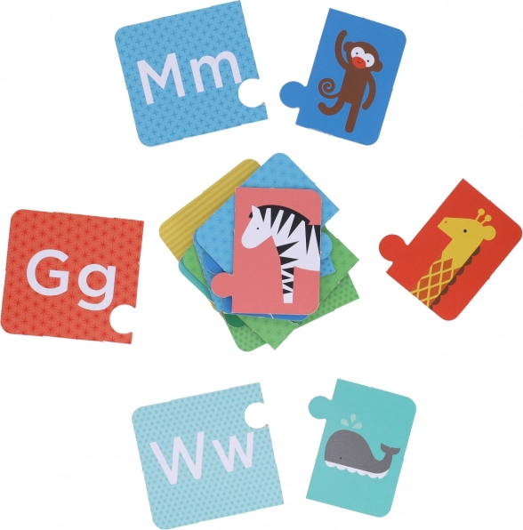 Każda karta zawiera literę i odpowiadającą jej ilustrację, co wspiera łączenie liter ze słowami.